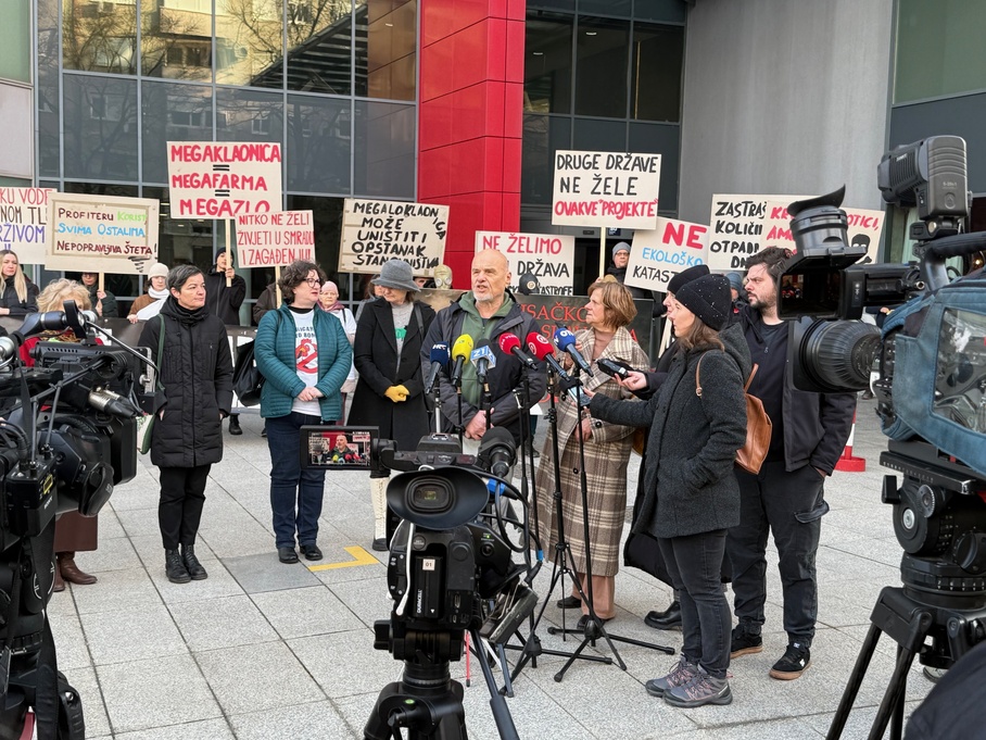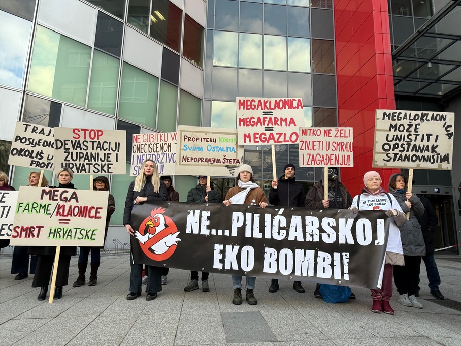 Zelena akcija, Prijatelji životinja i četiri građanske inicijative iz različitih općina i gradova Sisačko-moslavačke županije danas su ispred Ministarstva zaštite okoliša i zelene tranzicije održali akciju i konferenciju za medije, na kojoj su od Ministarstva zatražili da odbaci planove dva investitora koji na području županije planiraju izgradnju 18 mega farmi i klaonica pilića.