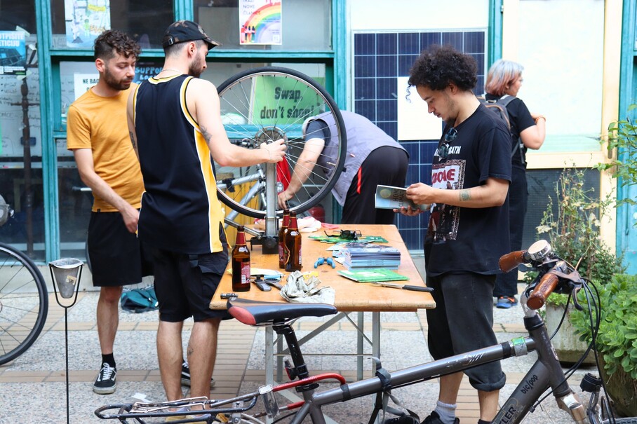 OPIS: besplatni, volonterski i participativni servis za bicikle gdje osobe uče popraviti bicikl uz pomoć volontera i volonterki. Osim promicanja ponovne uporabe i biciklizma, kao okolišno prihvatljivog oblika transporta, cilj je društvena solidarnost i uključivanje marginaliziranih zajednica poput izbjegličke populacije.