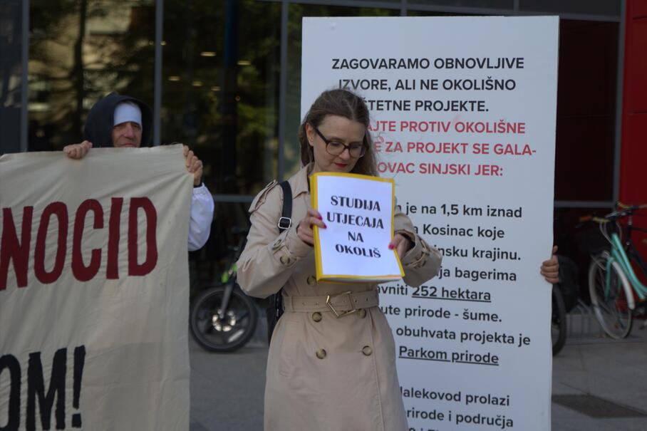 Ahead of today’s meeting of the expert committee assessing the project’s environmental impact, the environmental organisation Zelena akcija / FoE Croatia warned of the harmful consequences of the Gala–Obrovac Sinj solar power plant (SPP). The meeting took place at the Ministry of Environmental Protection and Green Transition, where activists staged a performance outside, symbolically discarding the environmental impact study into a rubbish bin, arguing it was inadequate and poorly prepared. “As a first step, we urge the committee to issue a negative opinion on the study. We then expect the Ministry, in its ruling, to declare the project environmentally unacceptable,” said Marija Mileta of FoE Croatia.