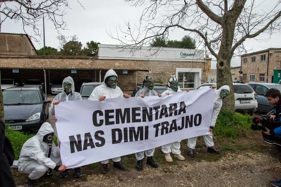 Aktivisti Zelene Akcije i Zelene Istre održali su akciju ispred pulske cementare Calucem Molins grupe gdje su s plinskim maskama na licu razvili transparent s porukom: “Cementara nas dimi trajno”. Time su upozorili na ono što već godinama trpe stanovnici Stoje i okolnih kvartova: crnu čađu po balkonima, peckanje očiju i grla, neugodne mirise, gust dim iz dimnjaka i intenzivnu buku noću i danju.