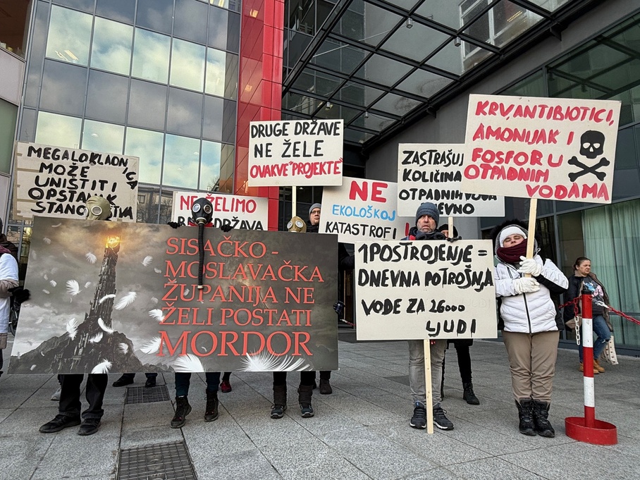 Zelena akcija, Prijatelji životinja i četiri građanske inicijative iz različitih općina i gradova Sisačko-moslavačke županije danas su ispred Ministarstva zaštite okoliša i zelene tranzicije održali akciju i konferenciju za medije, na kojoj su od Ministarstva zatražili da odbaci planove dva investitora koji na području županije planiraju izgradnju 18 mega farmi i klaonica pilića.