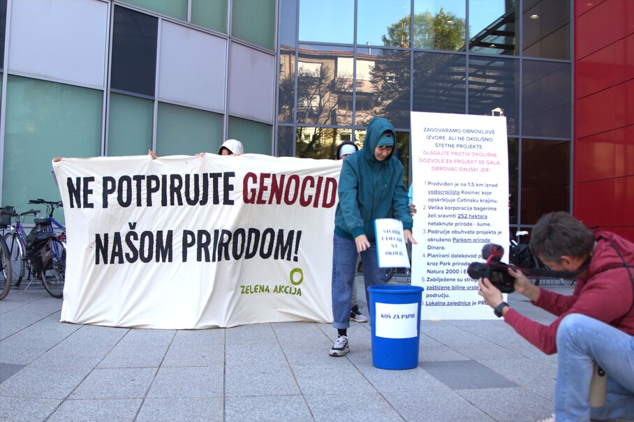 Zelena akcija upozorila je na štetnost projekta sunčane elektrane (SE) Gala–Obrovac Sinjski uoči današnje sjednice stručnog povjerenstva u postupku procjene utjecaja zahvata (projekta) na okoliš, koja se održala u Ministarstvu zaštite okoliša i zelene tranzicije. Tom su prigodom aktivisti i aktivistkinje izveli performans ispred Ministarstva, simbolično bacajući studiju utjecaja na okoliš u koš za smeće jer je smatraju manjkavom i loše pripremljenom. “Kao prvi korak, pozivamo povjerenstvo da donese negativno mišljenje o studiji. Nakon toga, očekujemo da Ministarstvo u svom rješenju taj projekt proglasi neprihvatljivim za okoliš”, poručila je Marija Mileta iz Zelene akcije.