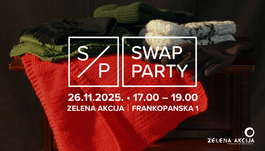 Zelena akcija vas poziva na tradicionalni “Swap party” koji će se održati u srijedu, 26.11., od 17 do 19 sati u Zelenoj akciji (Frankopanska 1, Zagreb).